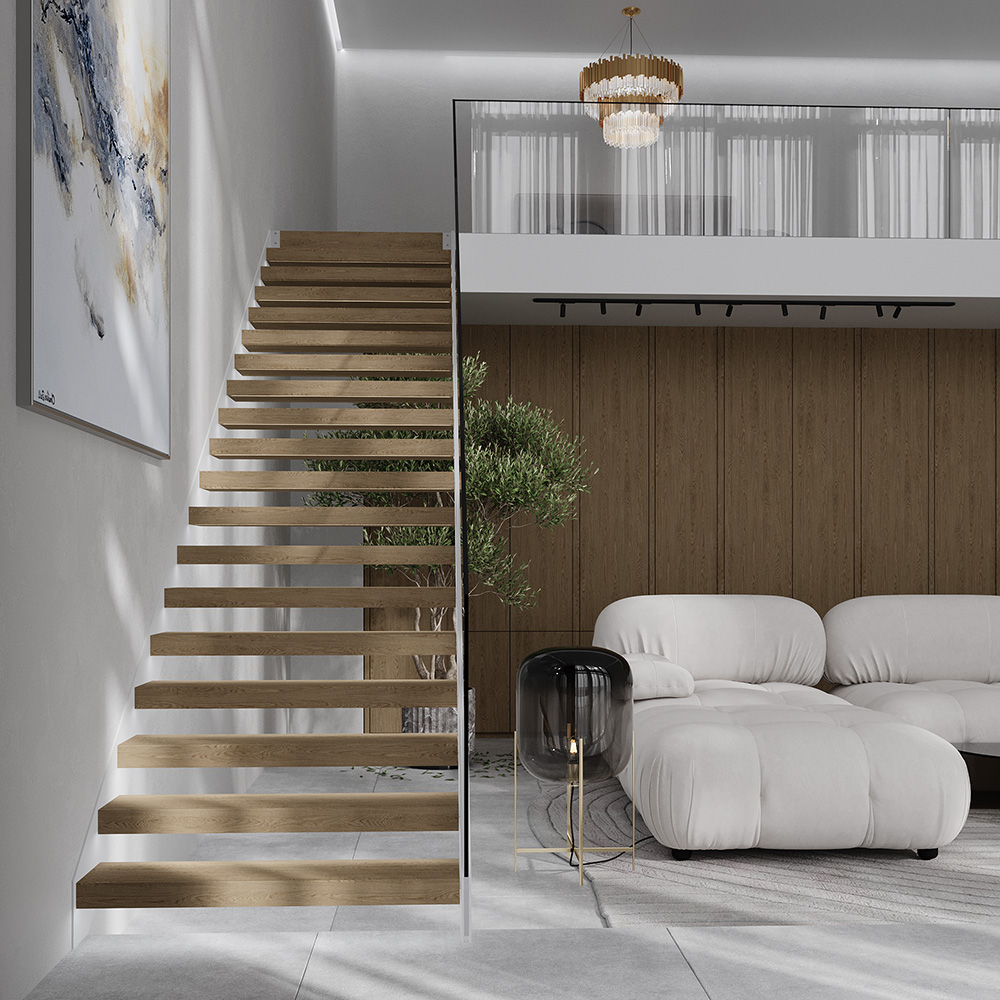На замере мы постараемся решить Ваш запрос — мы не просто делаем лестницы, а грамотно интегрируем её в общий дизайн. Далее мы сделаем визуализацию, при заказе лестницы она будет бесплатной.