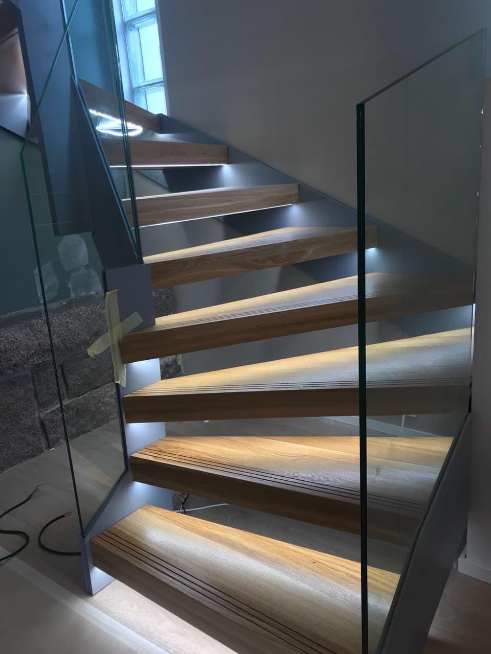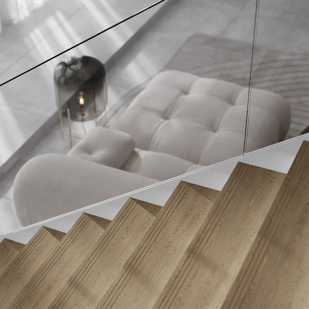 Каждую модель можно варьировать: выбрать дерево или камень для ступеней, подобрать цвет, в том числе под паркет. Выбрать ограждение, например металл или стекло с нужной степенью тонировки